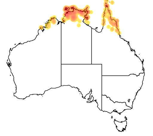 The Lady Apple can be seen as a large spreading tree up to 12 metres in height, or a low gnarled shrub in exposed coastal areas. On the sand dunes around Cape Flattery it even occurs as a spreading prostrate scrambler, growing side by side with the famous prostrate variety of Grevillea pteridifolia. The flowering period is from July to October. However, flowering gets later in the season the further south you head from the tip of Cape York. The flowers are huge white brushes of long white stamens, which are short-lived, but nevertheless very spectacular.